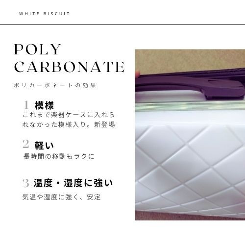 航空機や防弾シールドにも使用されるポリカーボネート素材を採用した、軽量・耐衝撃のバイオリンケース(ヴァイオリンケース)です。